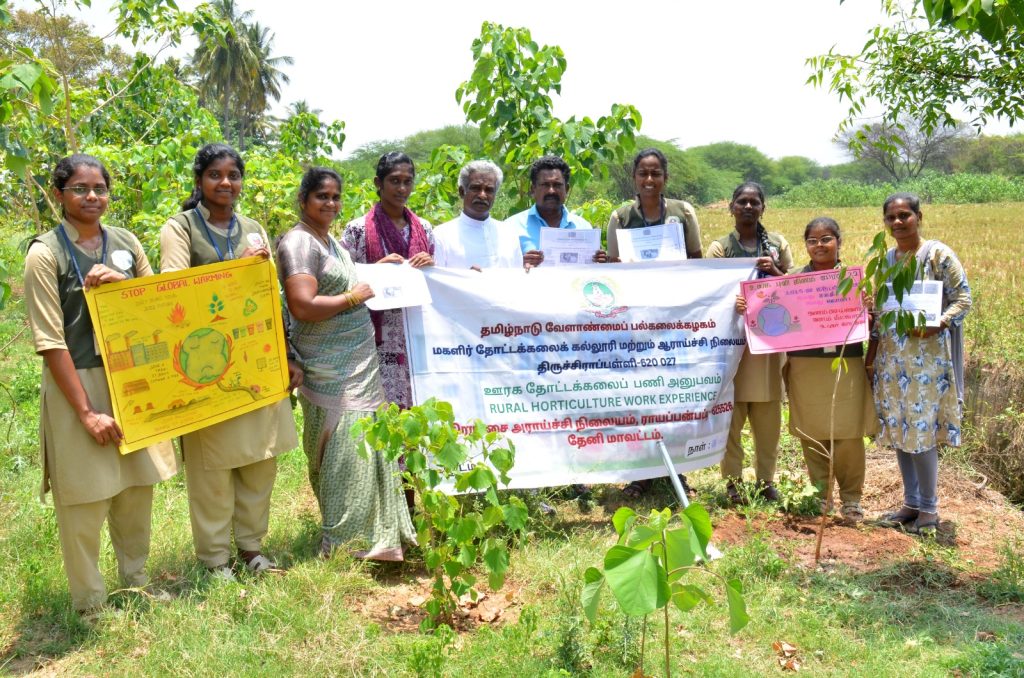 தமிழ்நாடு வேளாண்மை பல்கலைக்கழகம் மகளிர் தோட்டக்கலை கல்லூரி மற்றும் ஆராய்ச்சி நிலையம் திருச்சி சார்பில் பூமி தினத்தை (22.04.2025) முன்னிட்டு கோகிலாபுரம் குறுங்காட்டில் மரக்கன்றுகள் நடவு செய்யப்பட்டது. நிகழ்வுக்கு கம்பம் நேதாஜி அறக்கட்டளை நிறுவனர் சோ. பஞ்சு ராஜா தலைமை தாங்கினார். ஆலிலை குடும்பத்தார் மணிமாறன், நாகேந்திரன், நிருபன், சுதர்சனா, வாணி, சத்யா, மற்றும் கல்லூரி மாணவிகள் இப்சிதா மகந்தா, ஜெயஸ்ரீ, காஞ்சனா, கரணிப் பிரியா, கனிஷ்கா, காவியா ஸ்ரீ, கீர்த்தி, நல்லி ஆகியோர் கலந்துகொண்டனர்.